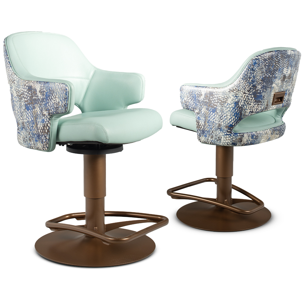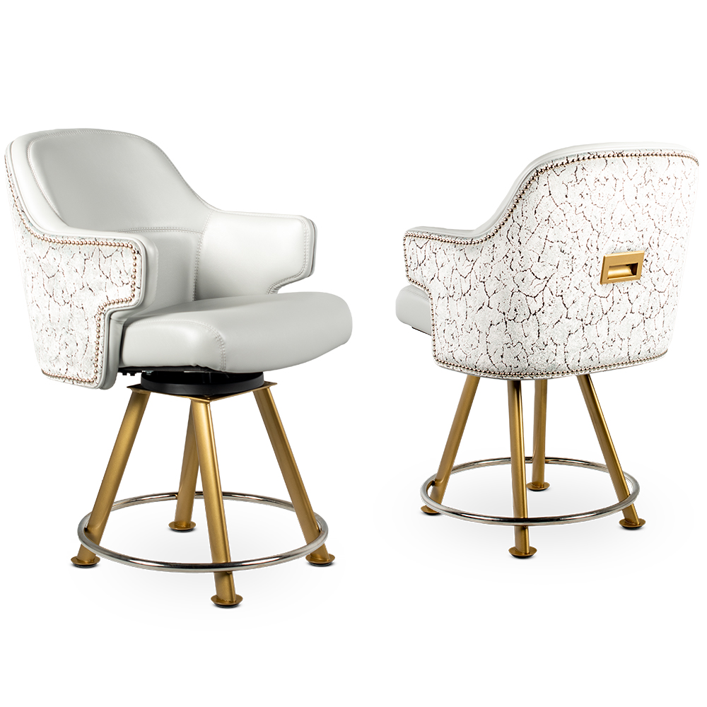 Experience comfort and luxury like never before with the Aurora high limit chair. The Aurora is a true masterpiece of design and comfort. Its ergonomic design cradles you in comfort, featuring a tall back and armrests that seamlessly connect, a curved seat front, and footrests to reduce leg strain. Built with durability in mind, it is a stylish and enduring addition to high limit rooms. The Aurora can be customized with a range of bases, finishes, and upholsteries to suit your casino’s design.