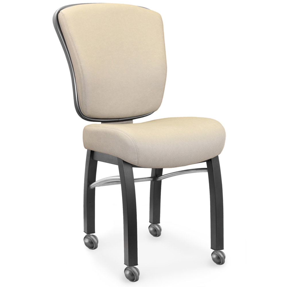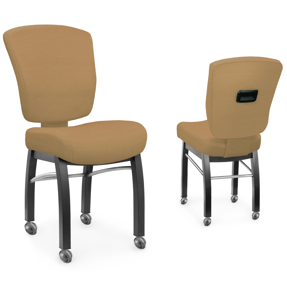 The Bella chair, one of many in the line up of performance casino seating from Gary Platt, takes our legendary X2-tended Play to a new level of comfort and style. Perfect for every casino seating need, The Bella casino chair defines simple elegance with gently curved lines in the seat and back, both unblemished by stitching. Gary Platt’s high-density foam is combined with ergonomically designed lumbar support for unsurpassed comfort. Convenience handles on the back allow for ease of movement.
